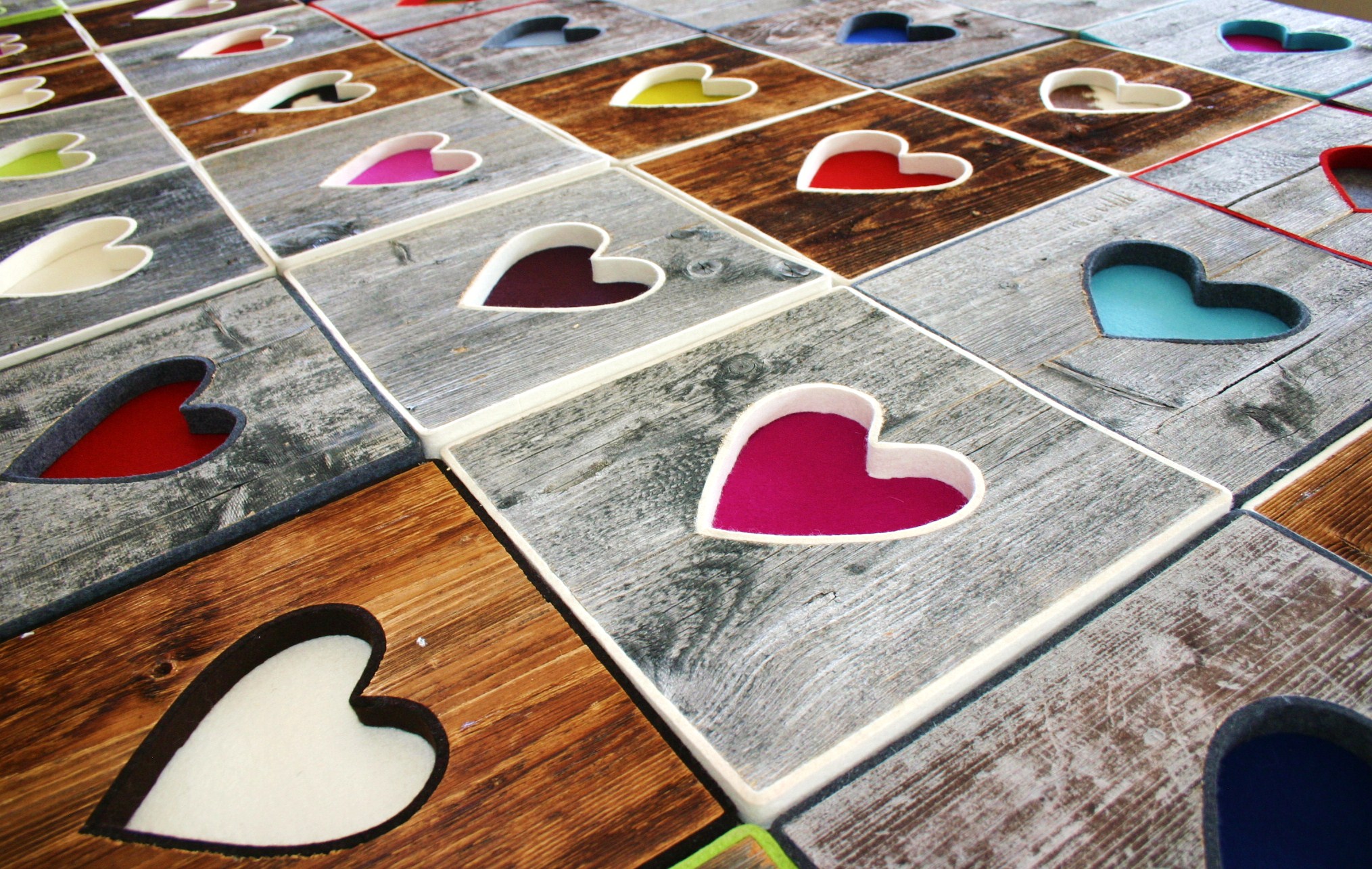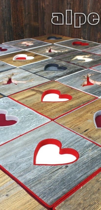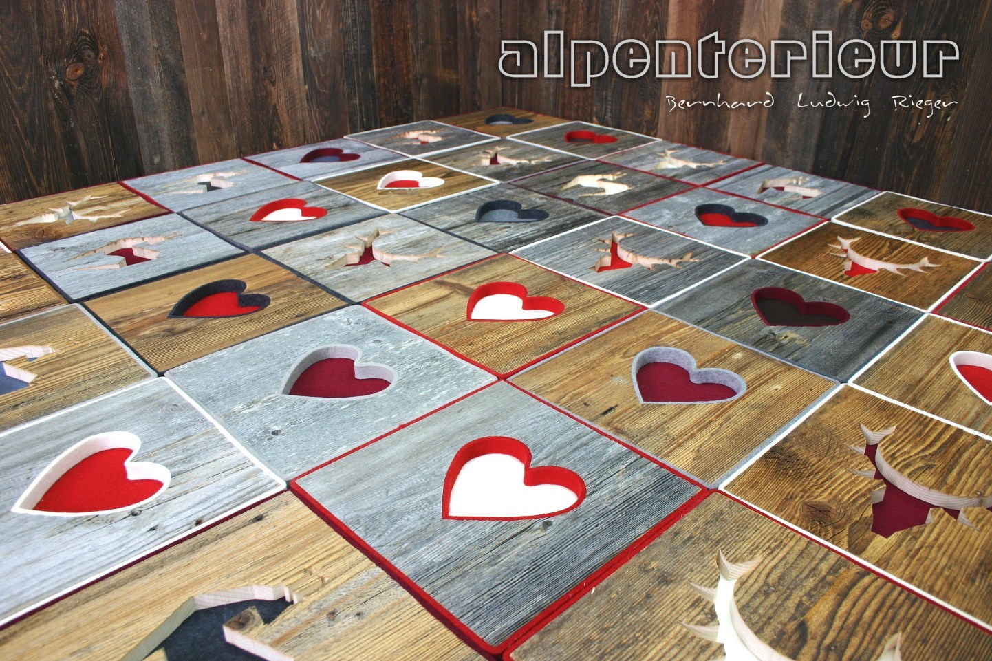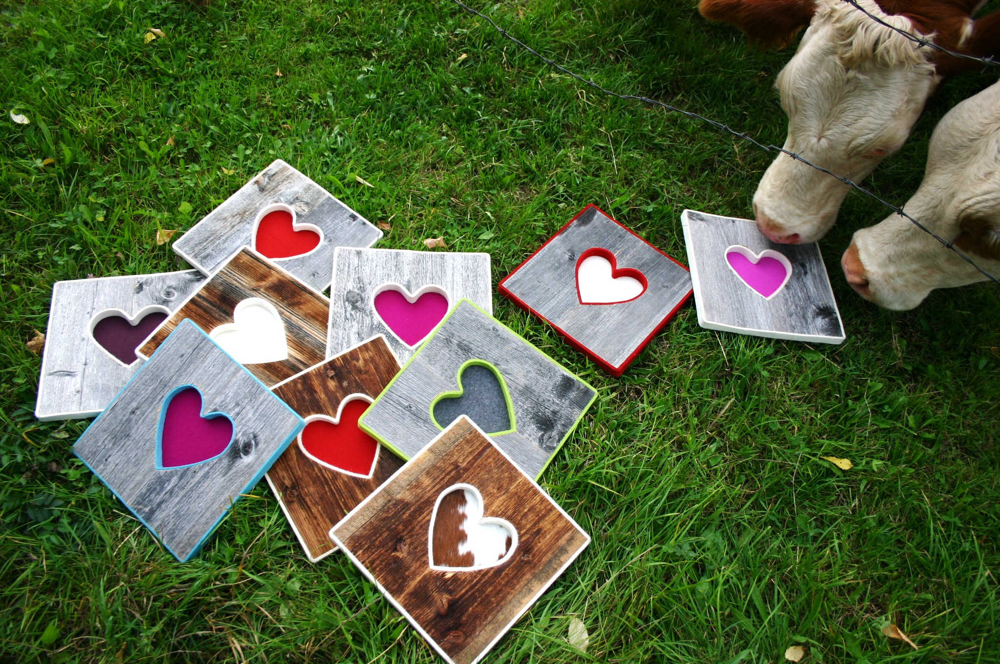 - Alleine beim Motiv HERZ² sind durch die Kombination von 3 Filzfarben aus einem Sortiment von 35 Farbtönen und Holzmustern über 100.000 Variationen möglich