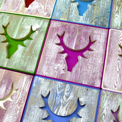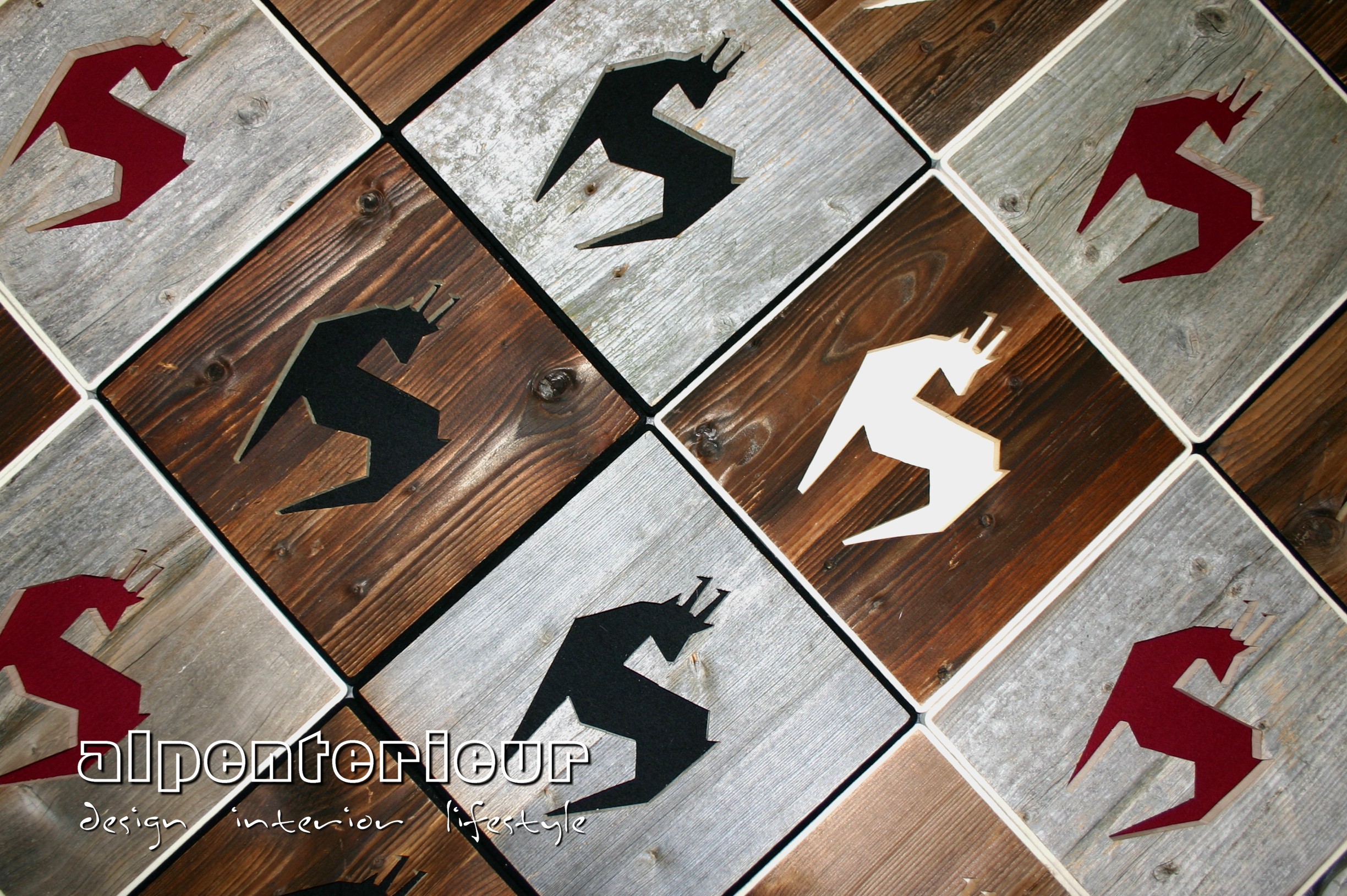 - Das Alpen Kult-Quadrat gibt es im Format 31x31cm mit Filzumrandung, außerdem handbemalt, bedruckt, vergoldet, lackiert, Rost- und Kreidetafeloptik, Stein- oder Shabby-Look.