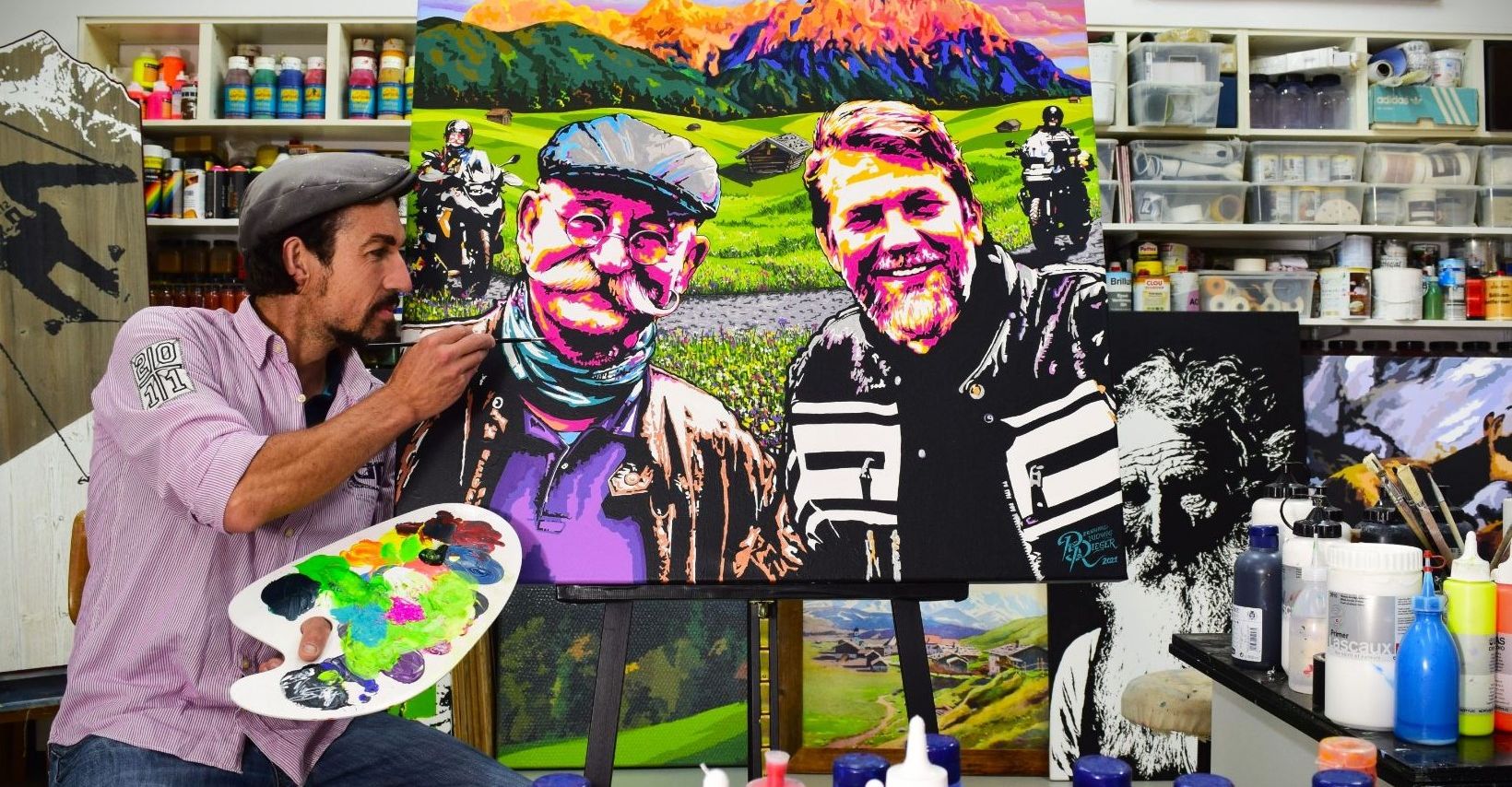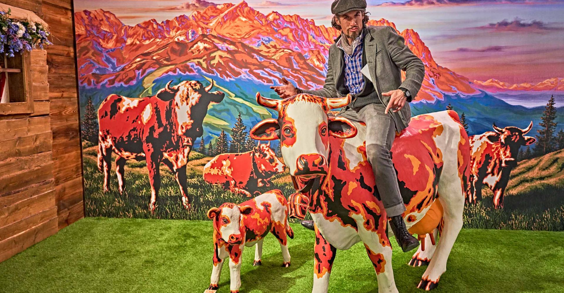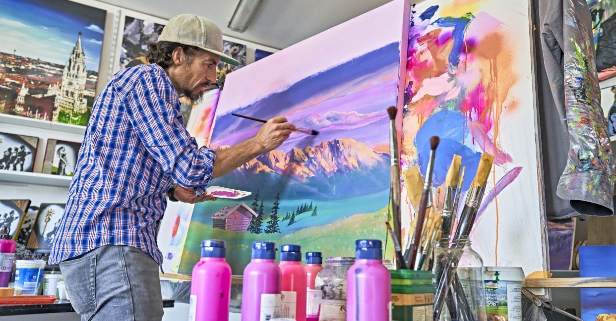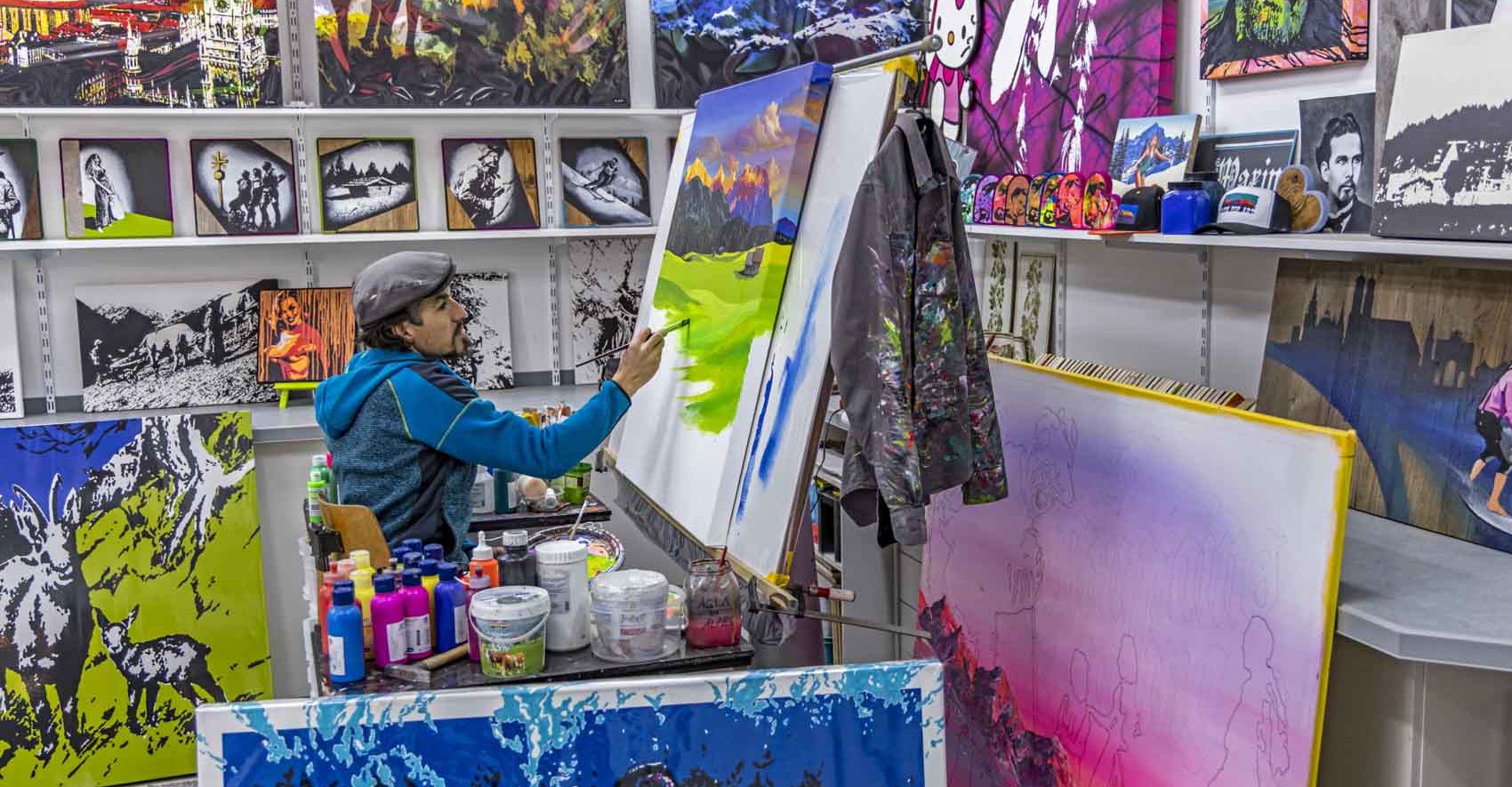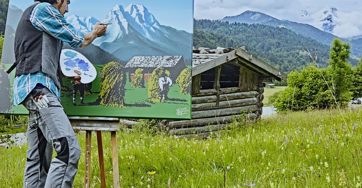 Mich begeistert die Kunst der alten Meister und die Werke der Genre- und Landschaftsmaler des 19. Jahrhunderts, gleichzeitig die amerikanische Kunst der 1950er und 1960er Jahre. Besonders fasziniert mich die Kunst, in der die Malerei Plakate und Titelseiten zierte und die goldenen Zeiten des Tourismus zum Ausdruck brachte. Allen voran aber inspirieren mich bis heute die großen Künstler der PopArt aus den frühen 1960er Jahren, um meine Heimat und den Alpenraum in meiner ganz eigenen Technik der Pinselführung und meines Malstils auf Leinwand festzuhalten. Doch weder prominente Gesichter und Darstellungen der modernen Popkultur noch mediale Stars sind Motive meiner Bilder, sondern vielmehr der vom Leben in den Bergen gezeichnete Bergbauer und dessen Lebensraum in den Alpen. Vor allem aber sind es die Berge und Gipfel selbst, die mich inspirieren, sie in meinen Kunstwerken der AlpinPopArt zu einem bestimmten Zeitpunkt festzuhalten. Sie zeigen sich stets von einer anderen Seite, je nach Tages- und Jahreszeit und erscheinen mir wie die Mimik eines markanten Gesichtes.