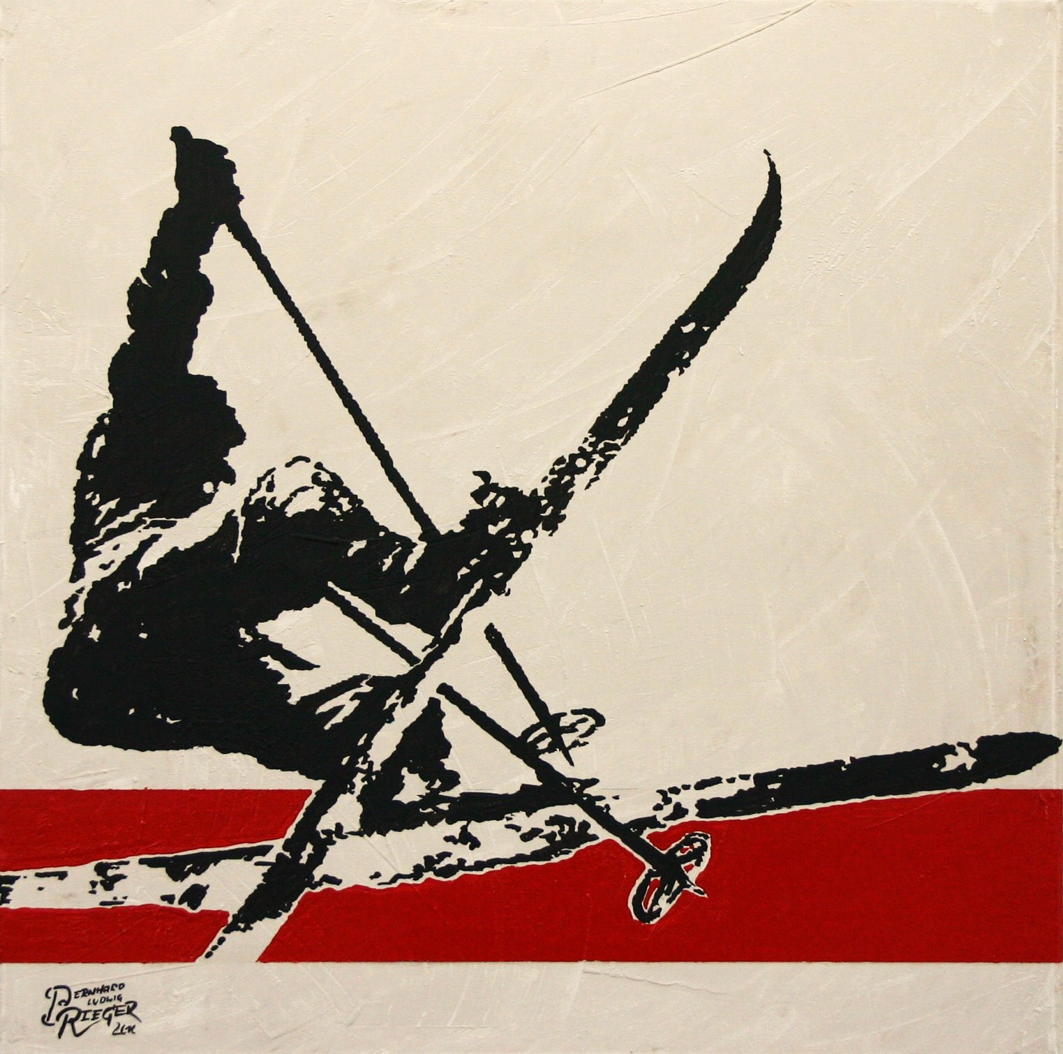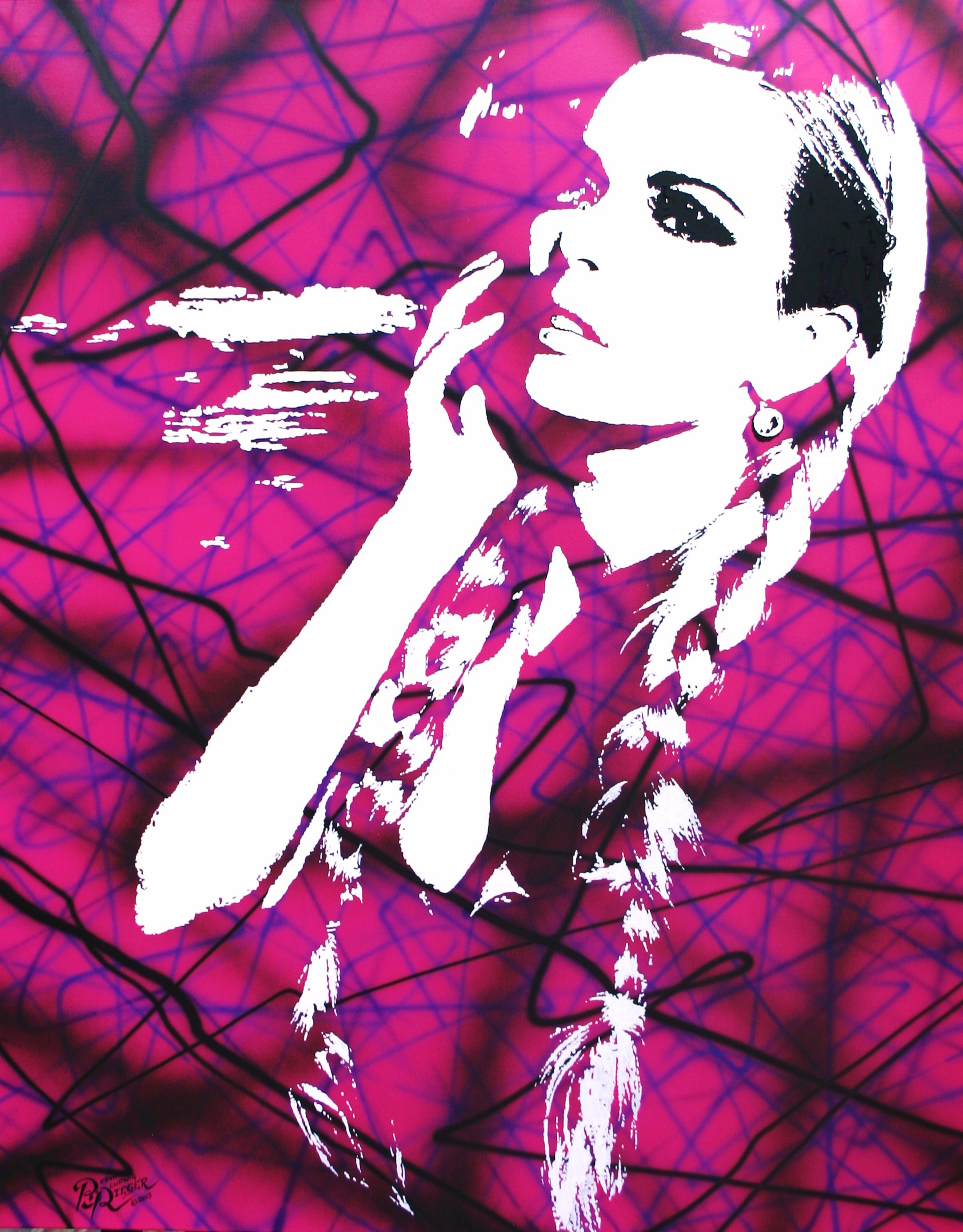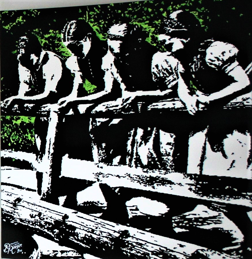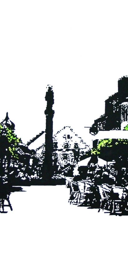 - durch flächige, plakative und illustrative Malweise in Verbindung mit extremer Farbigkeit besticht