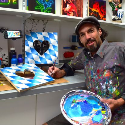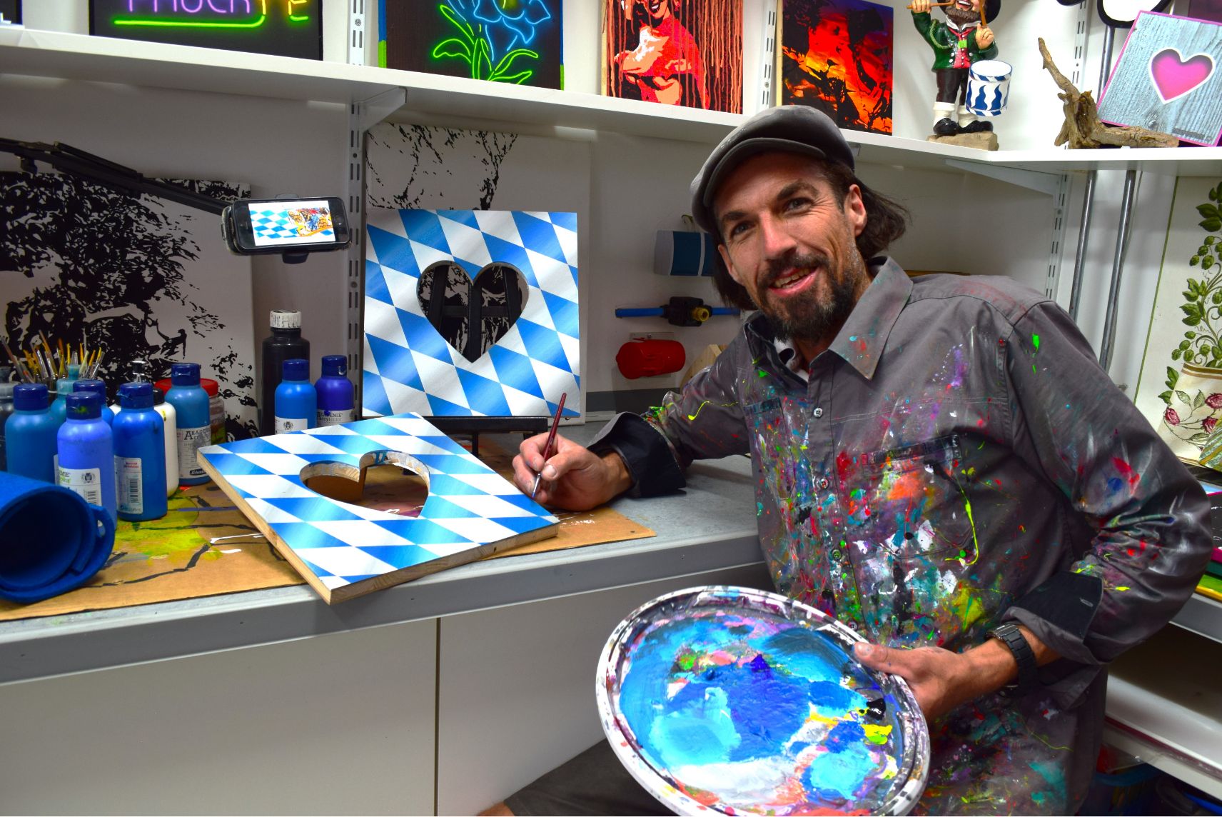 Da es mir immer schon ein großes Anliegen war unsere Kulturlandschaft und den Tourismus mit meinen Wirken aktiv mit zu gestalten, war für mich sofort klar diese ehrenvolle Aufgabe als Bayernbotschafter mit meinen konträren Wirkungsbereichen von der Lüftlmalerei, über moderne alpine Kunst bis hin zur Streetart auf meine ganz eigene progressive Art und farbenfroh zu bereichern.