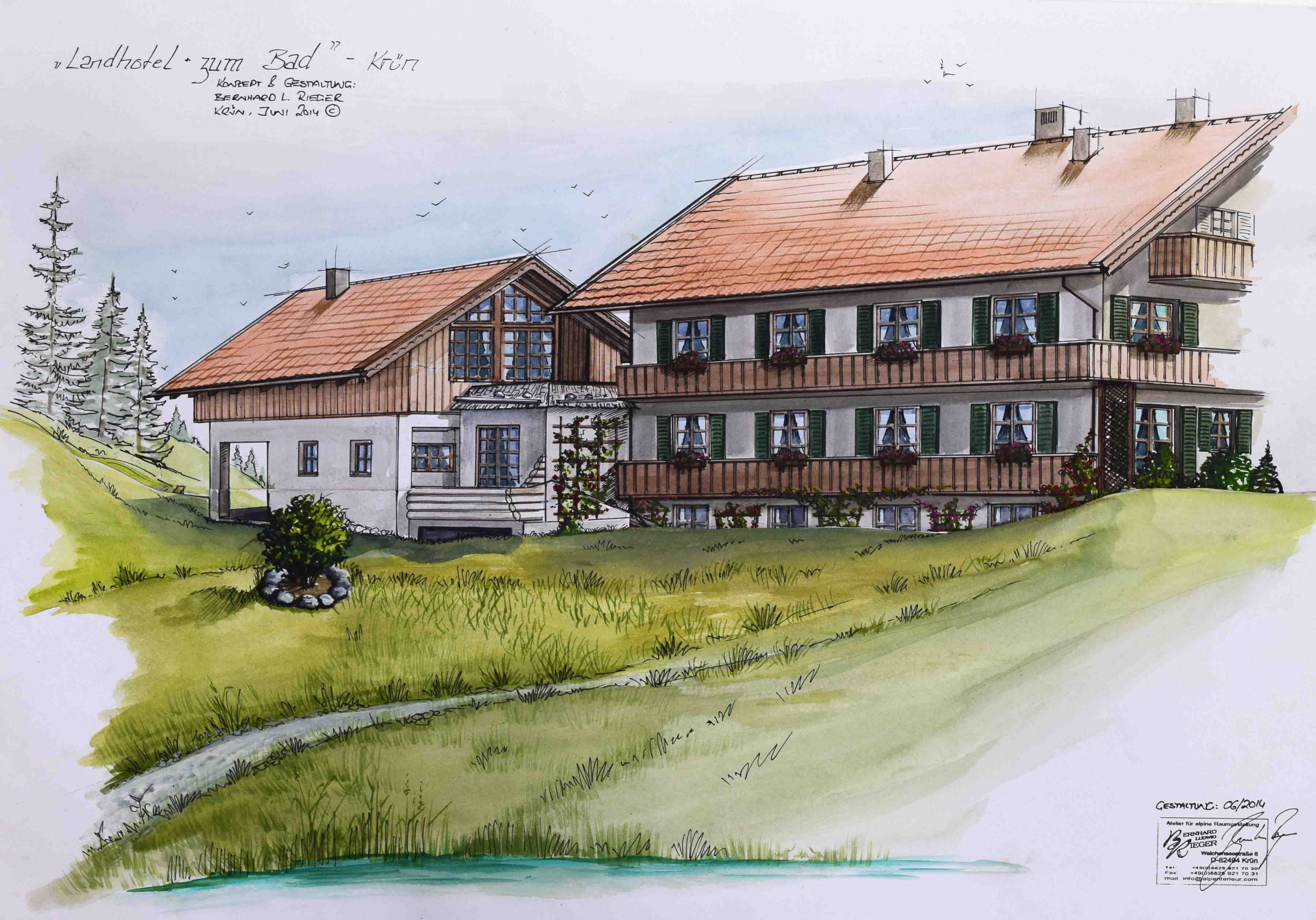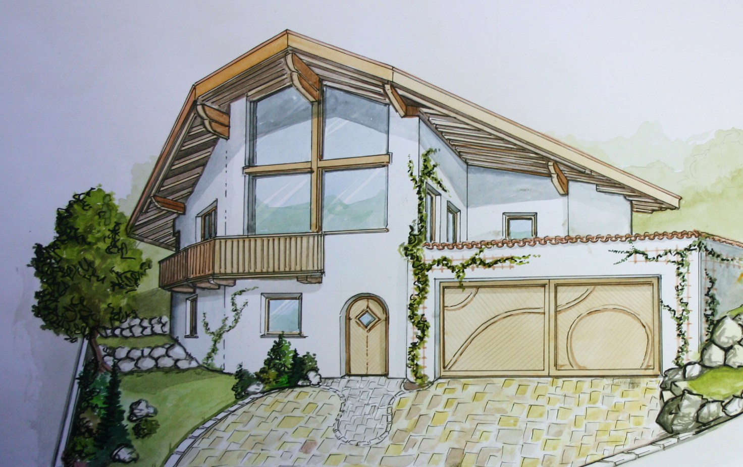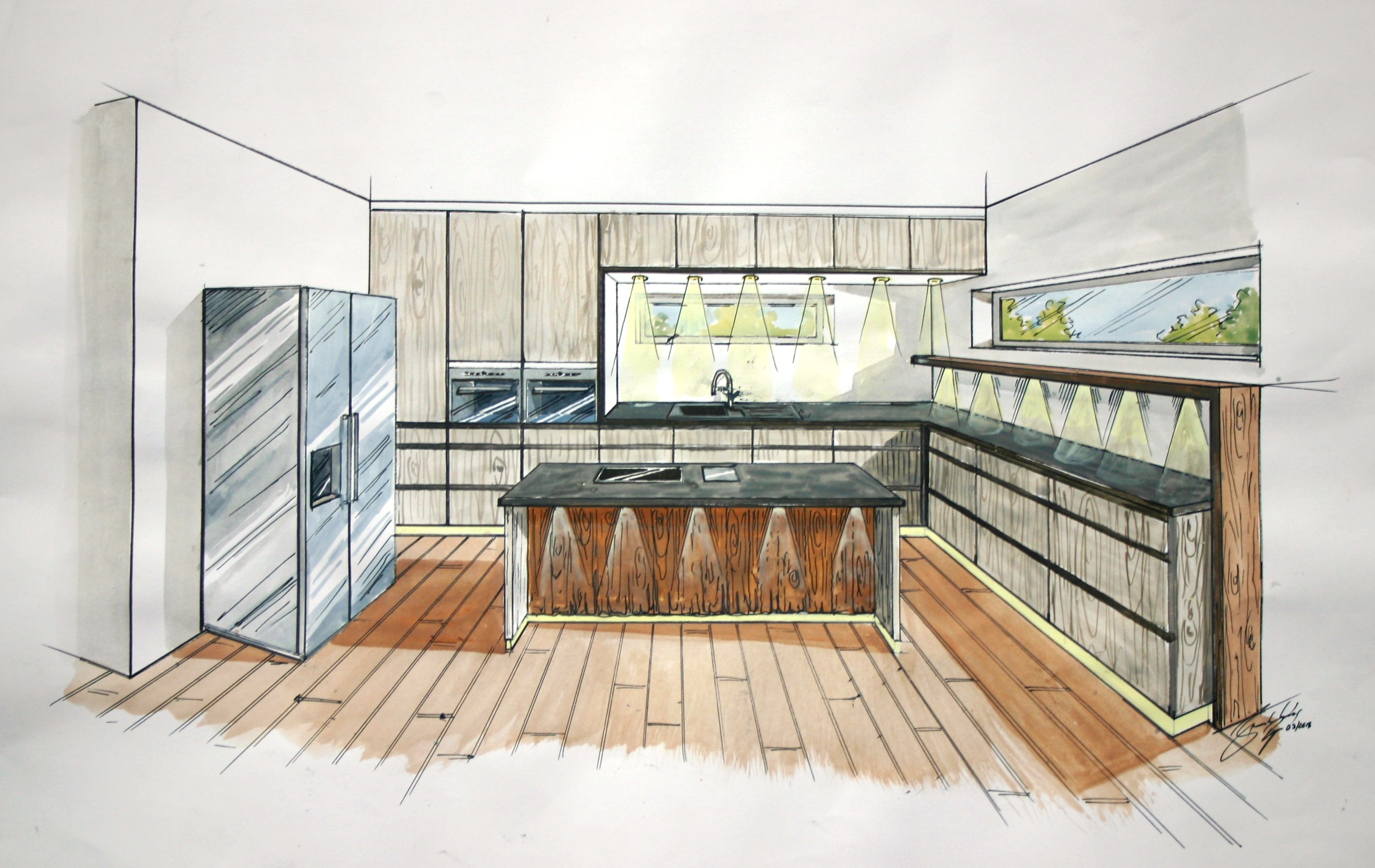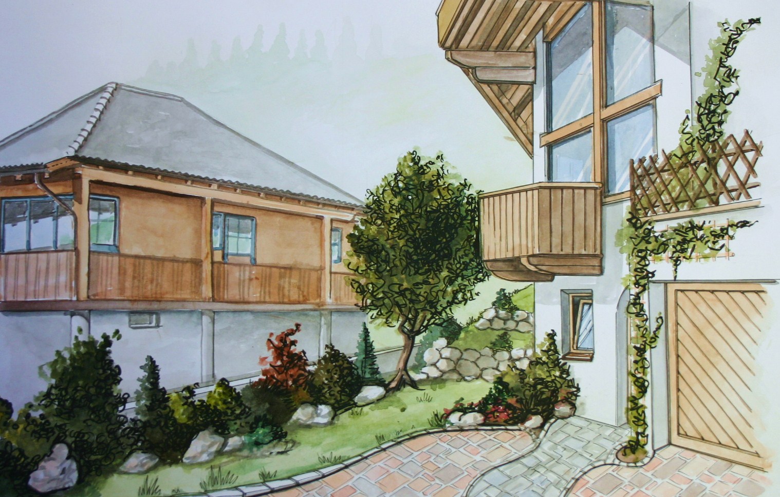 Nicht nur für eigene Projektumsetzungen fertige ich handgezeichnete und digital unterstütze Visualisierungen an, sondern auch für Unternehmen und Kunden, die Wert auf die Präsentation ihrer Projekte durch Handzeichnungen legen. Sowohl mit CAD erstellte Pläne als auch aufwendig colorierte und detaillierte Entwurfszeichnungen mit maßstabsgetreuen Darstellungen der Baumaßnahme werden maßgebliches Element einer schlüssigen Auftragspräsentation. Vor allem in der Raumgestaltung, Innenarchitektur aber auch im Garten- und Landschaftsbau sind Handskizzen beim Kunden gern gesehen.