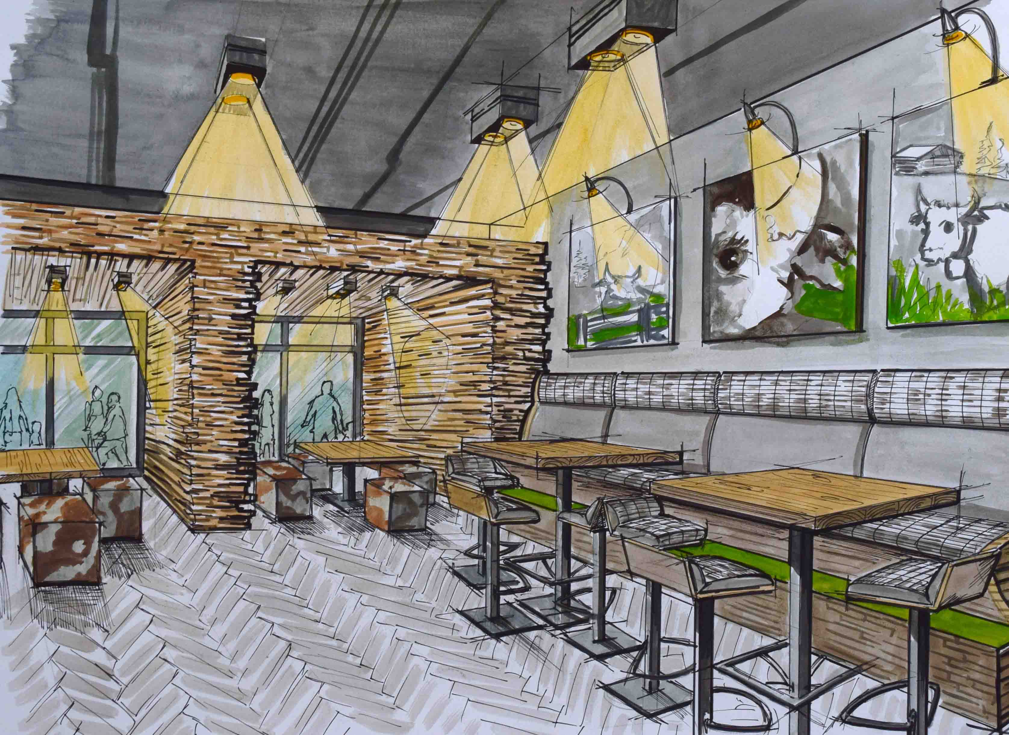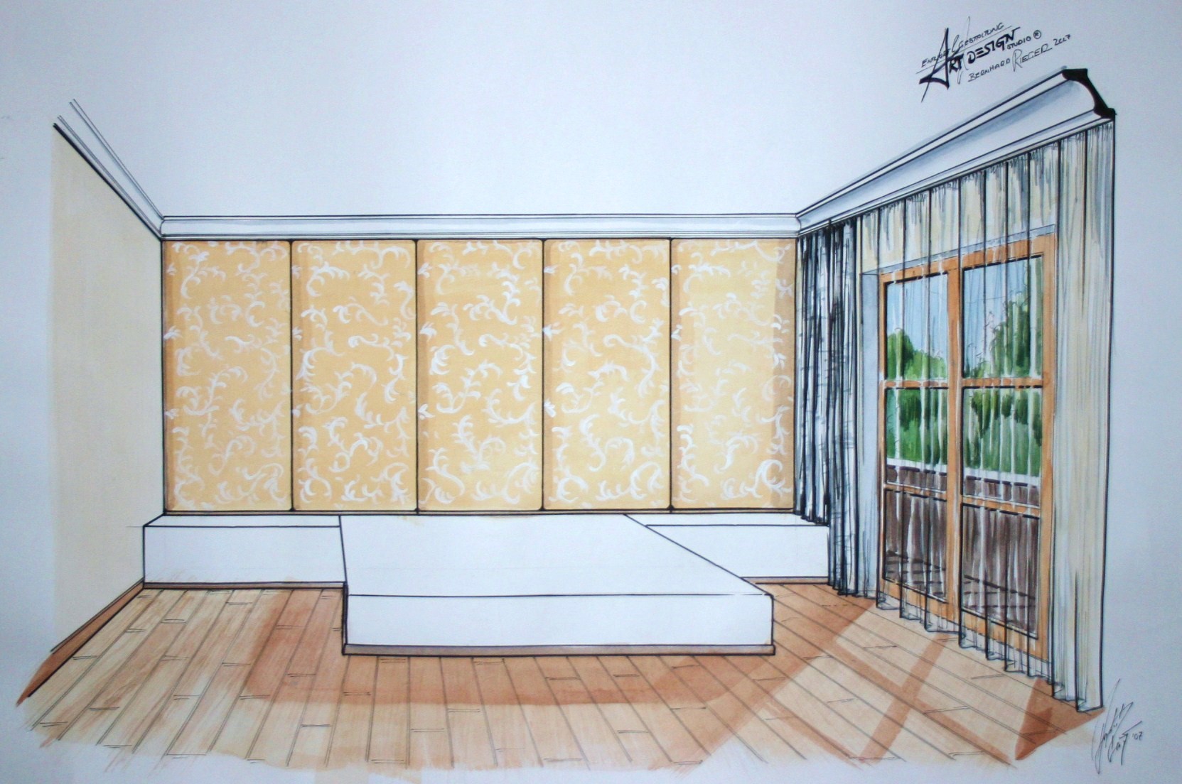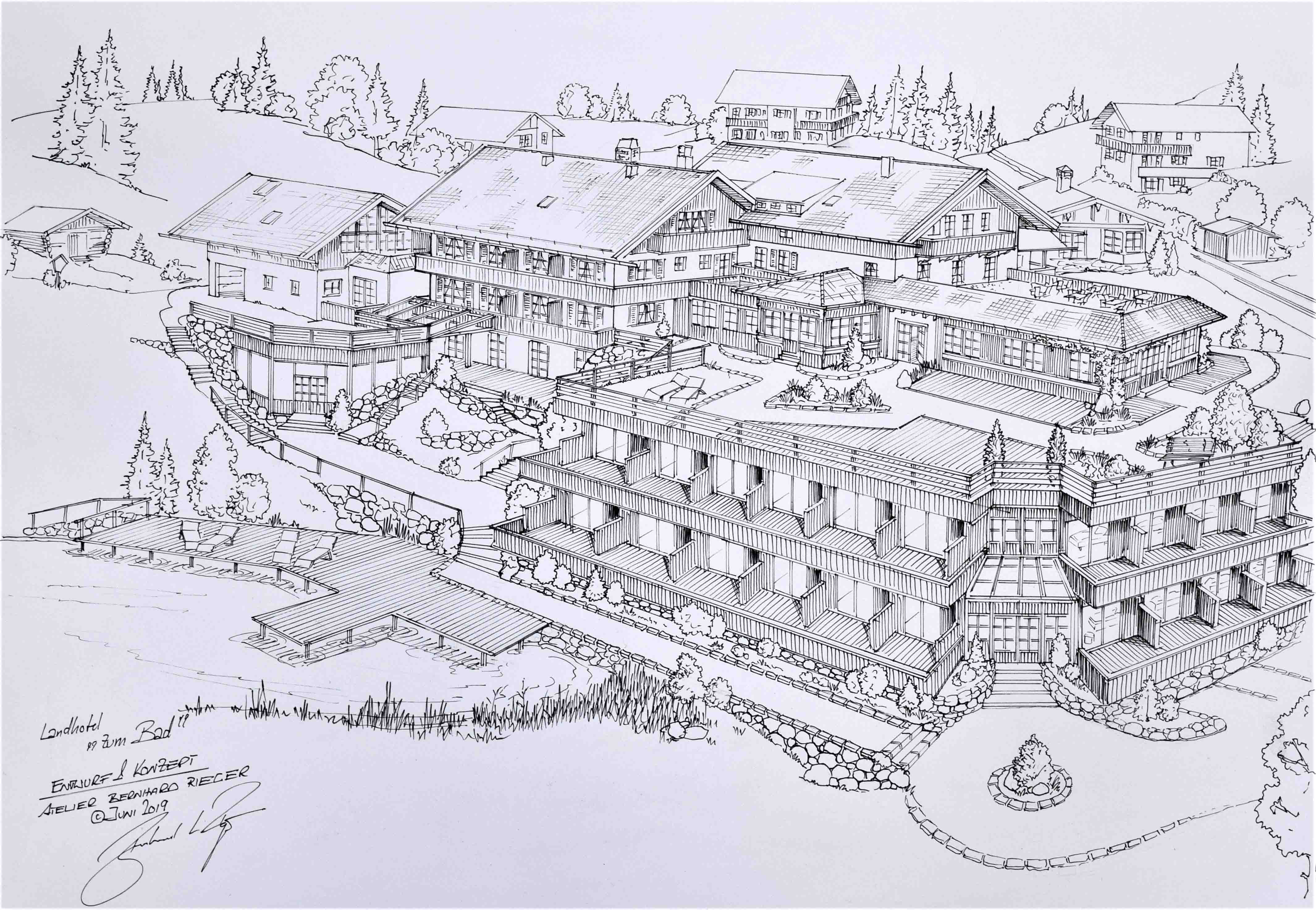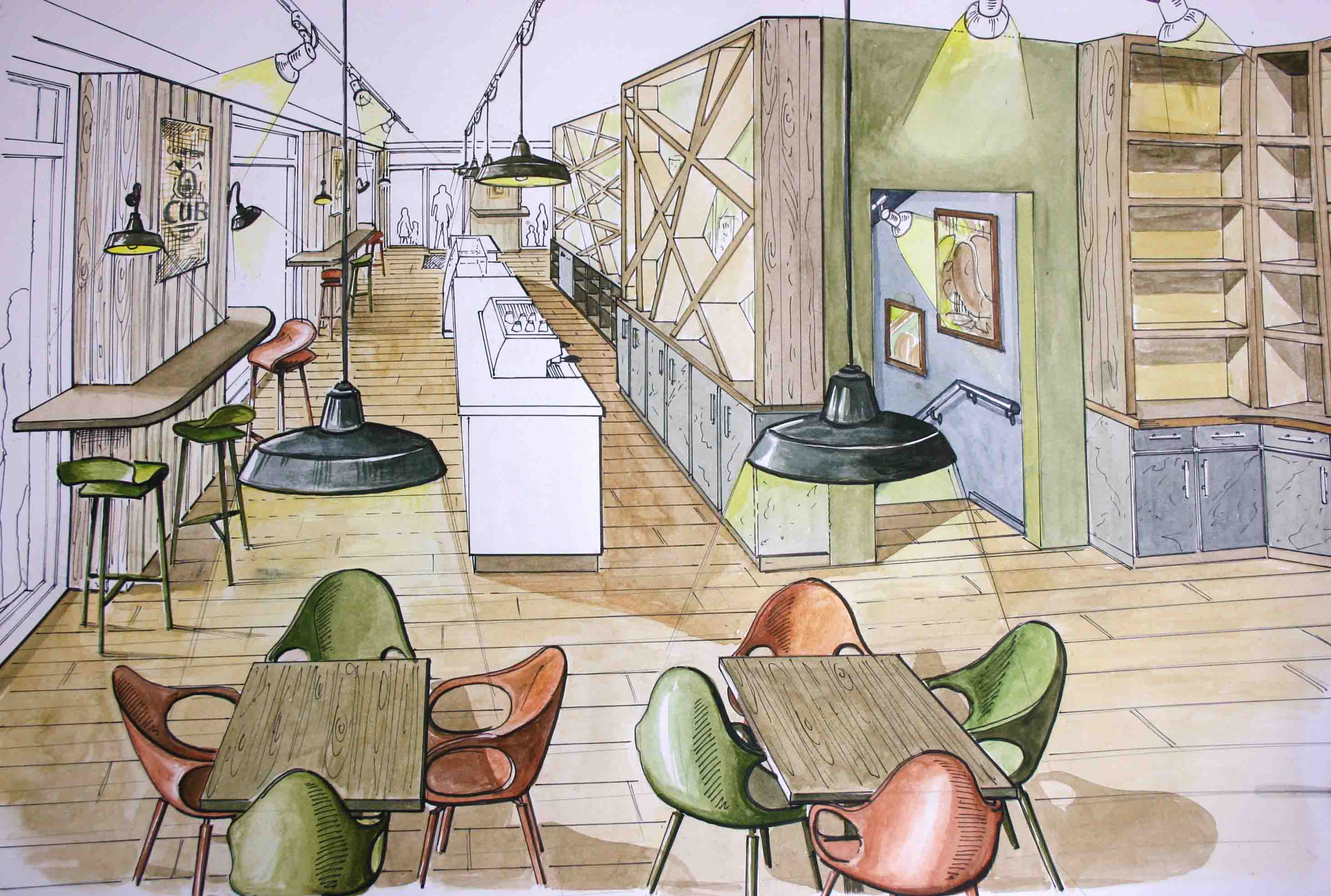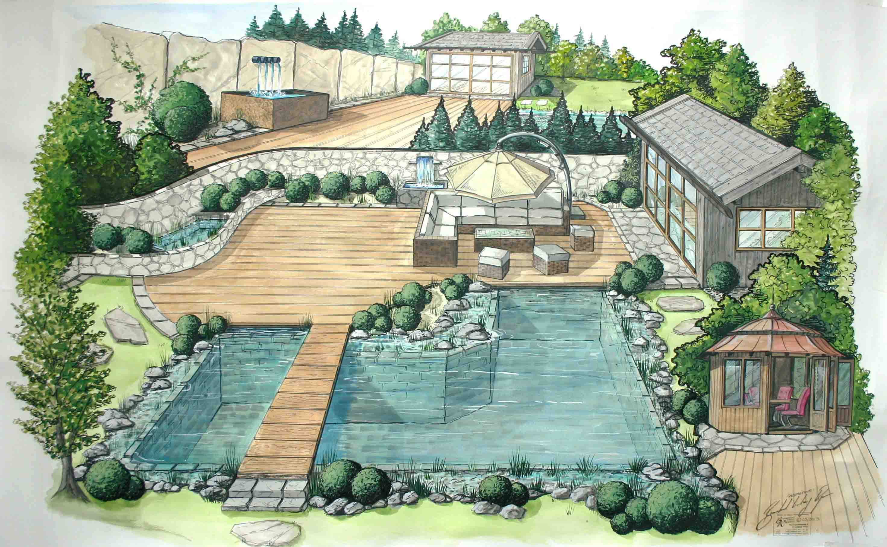 Nicht nur für eigene Projektumsetzungen fertige ich handgezeichnete und digital unterstütze Visualisierungen an, sondern auch für Unternehmen und Kunden, die Wert auf die Präsentation ihrer Projekte durch Handzeichnungen legen. Sowohl mit CAD erstellte Pläne als auch aufwendig colorierte und detaillierte Entwurfszeichnungen mit maßstabsgetreuen Darstellungen der Baumaßnahme werden maßgebliches Element einer schlüssigen Auftragspräsentation. Vor allem in der Raumgestaltung, Innenarchitektur aber auch im Garten- und Landschaftsbau sind Handskizzen beim Kunden gern gesehen.