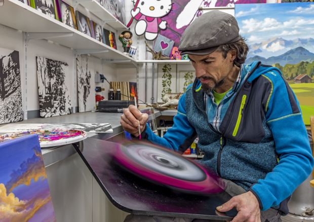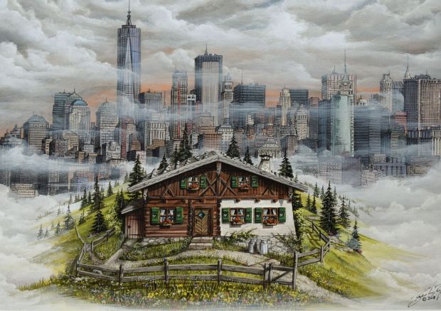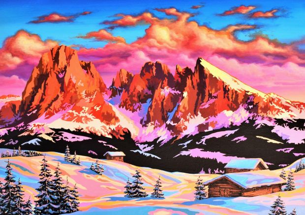 Daher spreche ich der realistischen Darstellung eines Berges eine besondere Rolle zu, arrangiere aber ganze Szenen von der Alm und dem Idyll in meiner Heimat auf eine ganz neue Art und Weise, reduziere Landschaftsformationen oder Bergsilhouetten auf exakt definierte und teils extrem überzeichnete Flächen. Übersättigte Farbgebung und das Zusammenspiel von komplexen und komplementären Farbkompositionen zeichnen meine AlpinPopArt aus. Eine große Rolle spielen dabei für mich immer die Wirkung des Lichteinfalles und die tageszeitliche Stimmungen, die es mir ermöglichen jedem Gemälde eine ganz besondere Energie und polarisierende Ausdrucksweise zu verleihen – so nehmen meine Gemälde, welche größtenteils Auftragsarbeiten im engen Austausch mit meinen Auftraggebern sind und auf ästhetische Art und Weise ganz sensibel mit diesem abgestimmt und ausgeführt werden, einen wichtigen Teil in zeitgenössischer Raumgestaltung ein.